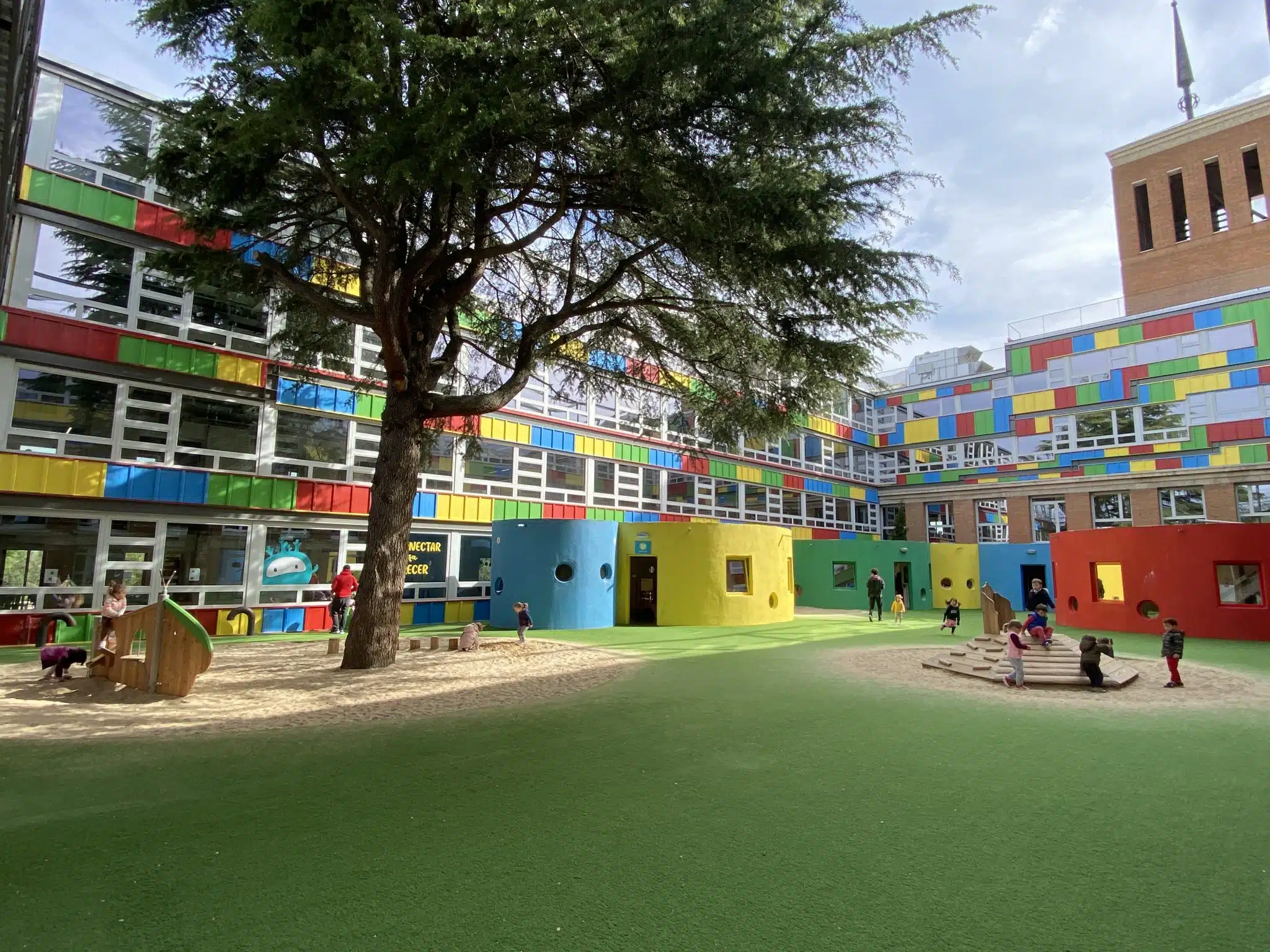 Biblioteca, Campo de fútbol, Cancha de baloncesto, Huerto, Laboratorios, Pista de patinaje, Sala de psicomotricidad, Sala de judo